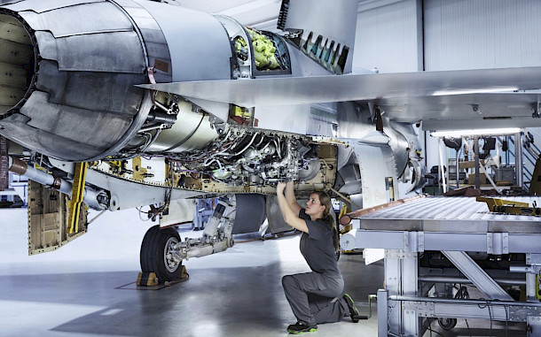 Exklusive Führung über das RUAG-Areal mit Besuch im Showroom und Blick hinter die Kulissen, Reparaturen, Wartung und Modernisierung – u. a. an Helikoptern und Kampfjets F/A-18.